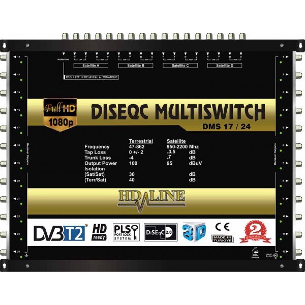 DMS 17/24 finis Multiswitch, DiSEqC 1.0 et DiSEqC 2.0 compatibles avec tous les types de récepteurs satellites numériques du marché.
